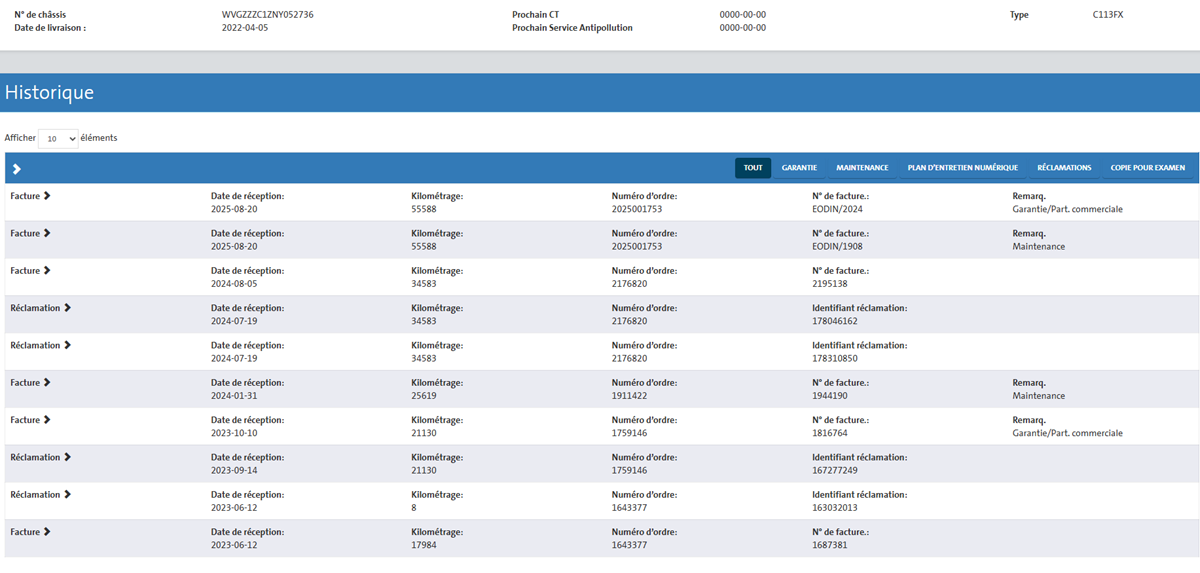 2 clés, Carte grise, Certificat de conformité (COC), Carnet d'entretien, Suivi Technique complet