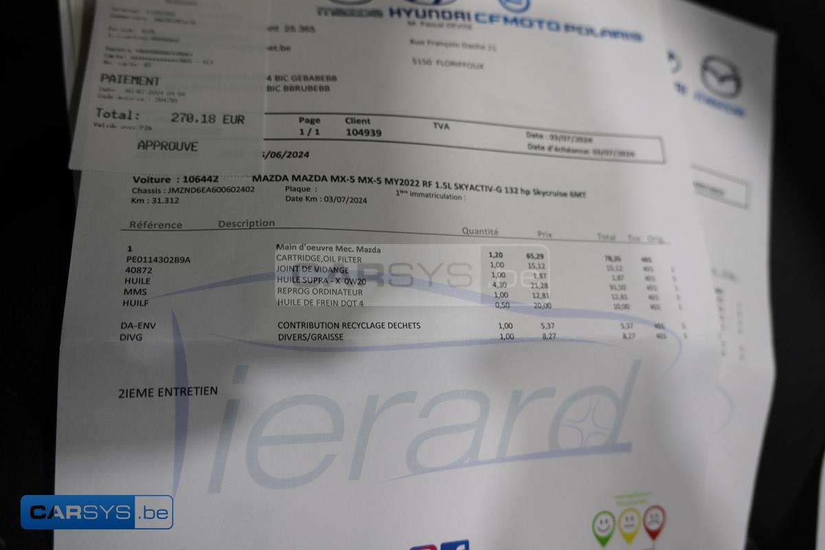 2 clés, Carte grise, Certificat de conformité (COC), Carnet d'entretien, Suivi Technique complet