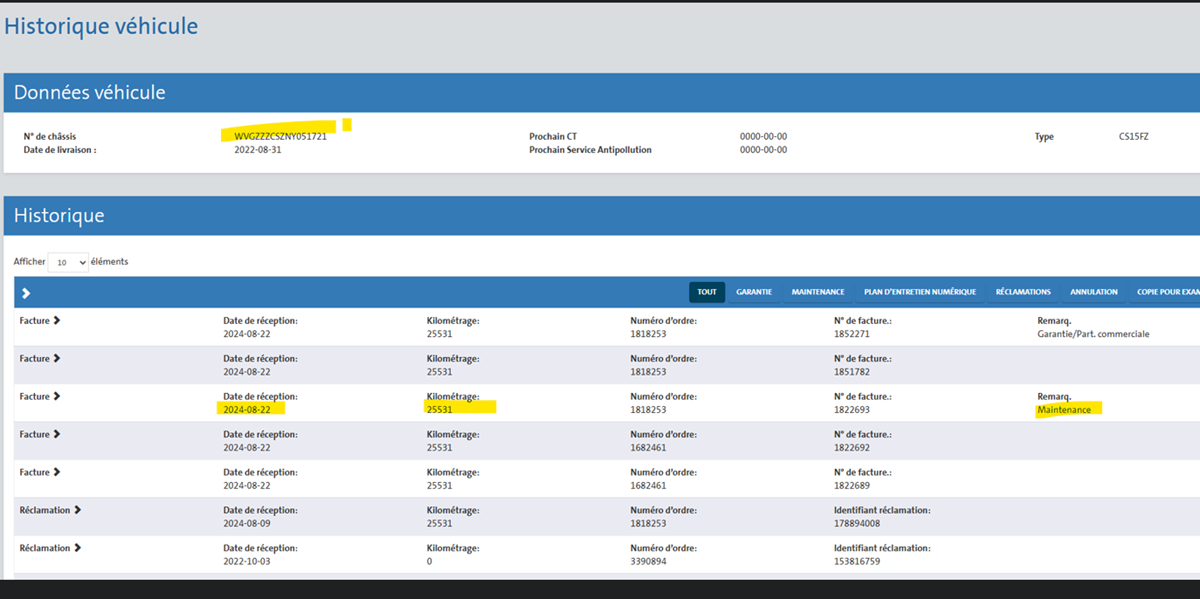 2 clés, Carte grise, Certificat de conformité (COC), Carnet d'entretien, Suivi Technique complet